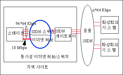 µî½Ã¼º ÀÌ´õ³Ý(isochronous Ethernet)Àº FDDI-II¿Í À¯»çÇÑ ¸éÀ» Áö´Ñ´Ù. º¸ÅëÀÇ 10 Mbps ÀÌ´õ³Ý ¼ºñ½º¿Ü¿¡ ³ª¸ÓÁö 6 MbpsÀ» °¢ 64 KbpsÀÇ 96 °³ ȸ¼±À¸·Î ³ª´©¾î ȸ¼±±³È¯ ¼ºñ½º¸¦ Á¦°øÇÑ´Ù. °¢°¢ÀÇ È¸¼±Àº ISDN ȸ¼±Ã³·³ µ¿ÀÛÇϹǷΠ½ºÅ×À̼ÇÀº ÇϳªÀÇ Ä¿³ØÅÍ·Î µî½Ã¼º ÀÌ´õ³Ý¿¡ ¿¬°áÇÏ¸é º¸ÅëÀÇ ÀÌ´õ³Ý ¼ºñ½º¿Ü¿¡ ISDN ¼ºñ½º¸¦ ¹ÞÀ» ¼ö ÀÖ´Ù. Áß¾Ó Çãºê´Â Áö¿ª »çÀÌÆ®¸¦ ¿ÜºÎ °øÁß ISDN ¼ºñ½º¿Í ¿¬°áÇÔÀ¸·Î½á Ãß°¡ÀûÀÎ ÀåÄ¡¾øÀÌ ¸ðµç ½ºÅ×À̼ÇÀÌ Á¢±ÙÇÒ ¼ö ÀÖ´Â °ÔÀÌÆ®¿þÀÌ(gateway) ±â´ÉÀ» Á¦°øÇÑ´Ù. ¾Æ·¡ ±×¸²¿¡¼ µî½Ã¼º ÀÌ´õ³ÝÀº °øÁß ISDN ³×Æ®¿öÅ©¸¦ Á¢±ÙÇϴµ¥ ÀÌ¿ëµÇ°í ÀÖ´Ù.