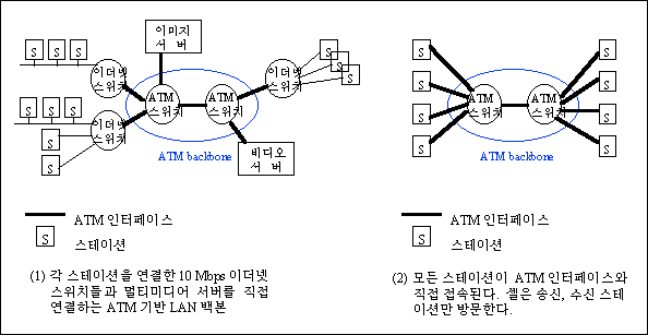ATMÀº °íÁ¤µÈ ±æÀÌÀÇ ¼¿(cell)À» ´Ù·ç´Â ±³È¯±â¼ú·Î ¿©·¯ Ŭ·¡½ºÀÇ ¼ºñ½º¸¦ Á¦°øÇÒ ¼ö ÀÕ´Ù. °¡·É Àüȸ¦ À§ÇÑ µî½Ã¼º CBR ¼ºñ½º, ¾ÐÃàµÇ ºñµð¿À¸¦ À§ÇÑ µî½Ã¼º VBR ¼ºñ½º, À̿ܿ¡ ¿©·¯ µî±ÞÀÇ µ¥ÀÌÅÍ ¼ºñ½º µî ¼ºñ½ºÅ¬·¡½º¿¡ µû¶ó ´Ù¸¥ ¼ÓµµÀÇ ¿¬°áÀ» ¼³¸³ÇÒ ¼ö ÀÖ´Ù. À̰ÍÀº ºê·Îµå¹êµå(broadband) ³×À¸ÅýÅ©·Î ´Ù¾çÇÑ À¯ÇüÀÇ µðÁöÅÐ ¼ºñ½º¸¦ ÅëÇÕÇÏ¿© Á¦°øÇØÁÖÀÚ´Â B-ISDNÀÇ ¸ñÀû¿¡ Àß ºÎÇյȴٴ Á¡¿¡ ÁÖ¸ñÇÏÀÚ.